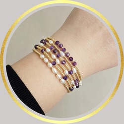 Moda Ins Estilo Ametista Frisado Pulseira Moda Luz Luxo Banhado A Ouro Spacer Beads Nicho Design Atacado das mulheres