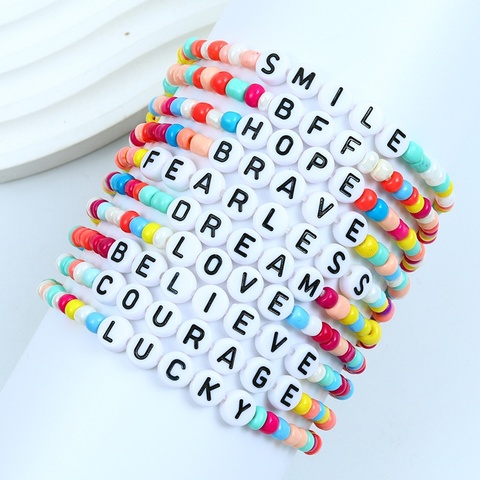 Özelleştirilebilir toplu siparişler Trendy kids 'kişiselleştirilmiş esnek bilezikler akrilik mektup boncuk aşk Friendship dostluk yıldönümleri