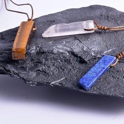 Tianhe kaplan gözü kolye düzensiz düz uzun şerit ametist kırmızı akik kelebek şekilli örgülü inci renkli budist takı